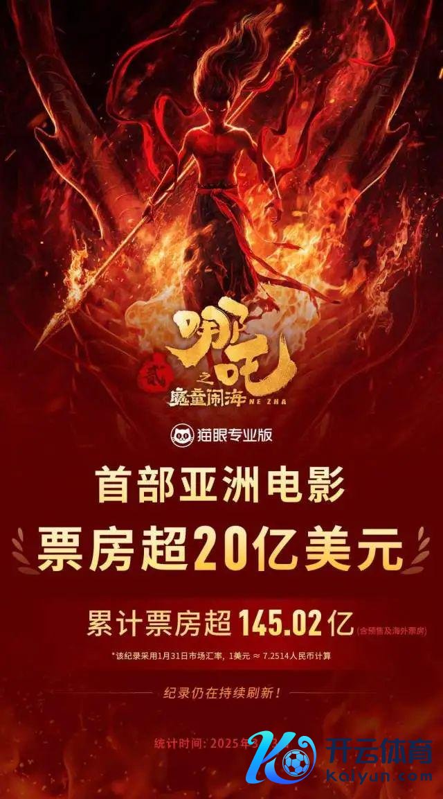 当今,《哪吒2》已跃升至众人影史票房榜第7位,本周有望高出《复仇者定约3:无尽干戈》(累计票房148.82亿元),登上众人影史票房榜第6位。此外,《哪吒2》的外洋上映累计票房已达1.65亿元。