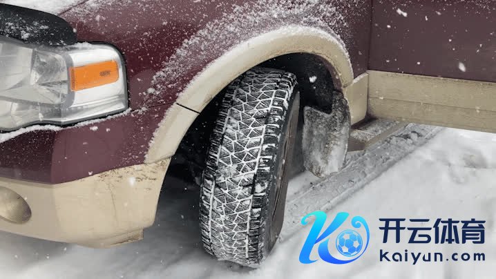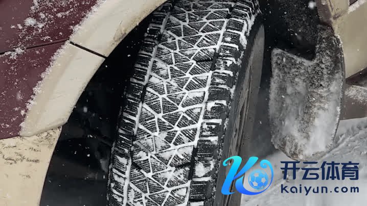 这辆车稳稳的行驶在雪地里,车轮在地上留住了一串陈迹,为什么它能在雪地里行驶不打滑呢?关节在于它的轮胎。