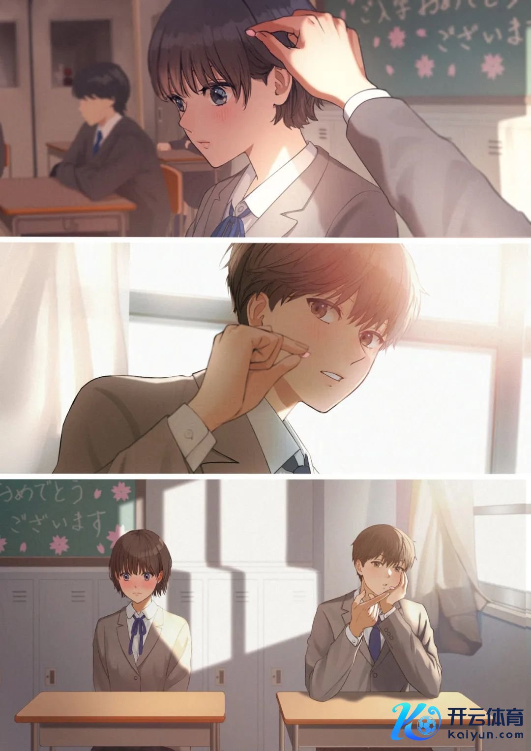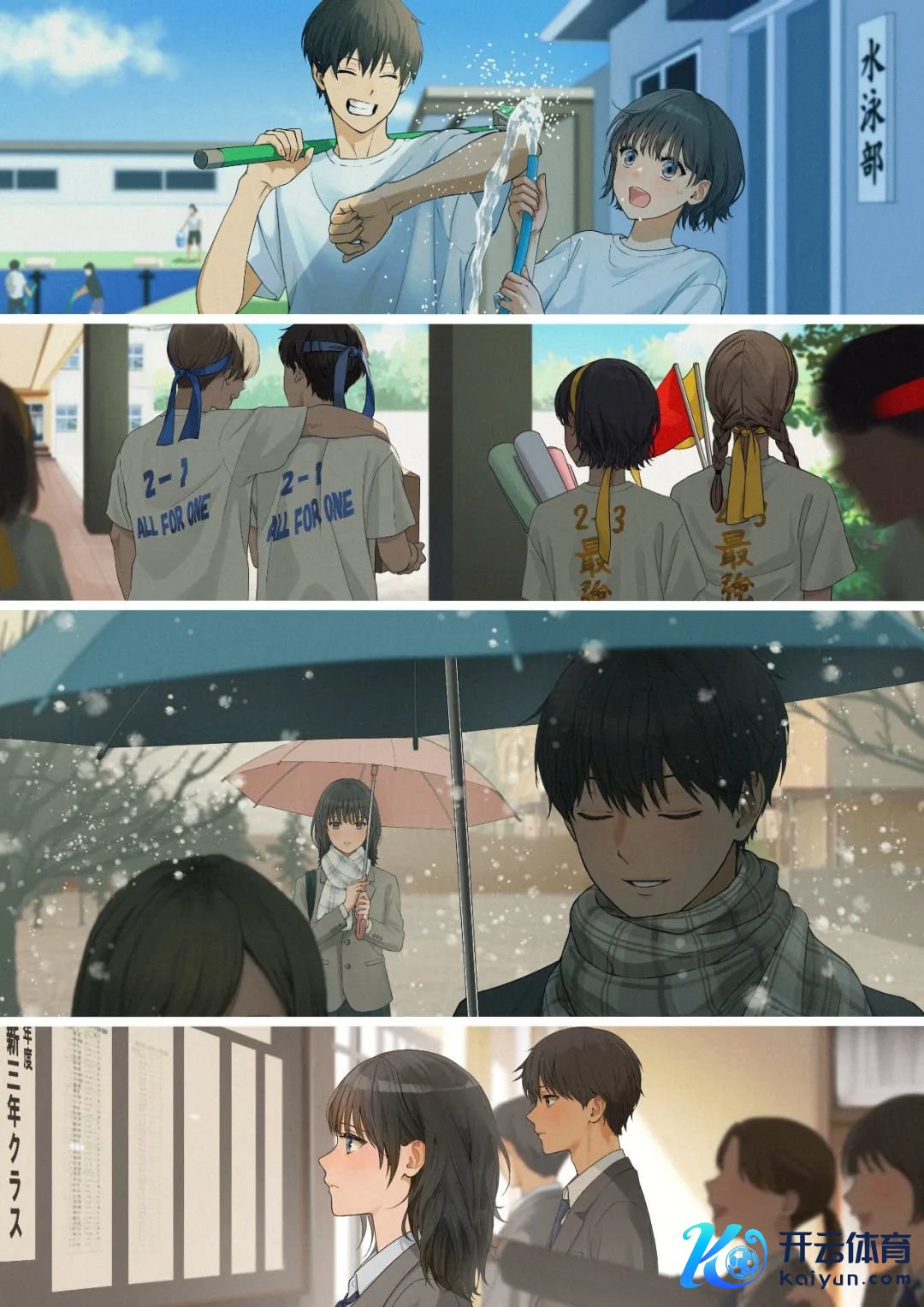 充满阳光的教室、被雨水打湿的城市、两东谈主的窗户壁板,刹那间,风吹过,故事运转了。