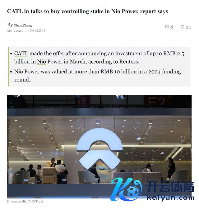 据外媒报谈,中国能源电板巨头宁德期间正在就收购电动汽车制造商蔚来(Nio)旗下能源业务部门的控股权进行谈判。据报谈,宁德期间在本年 3 月文牍对蔚来能源(Nio Power)部门进行最高 25 亿元东谈主民币的投资后,冷漠了收购控股权的提议。在报谈中,知情东谈主士并未显现宁德期间收购蔚来能源交游的金额,但此前在2024 年的一轮融资中开云体育,蔚来能源的估值已进步 100 亿元东谈主民币。