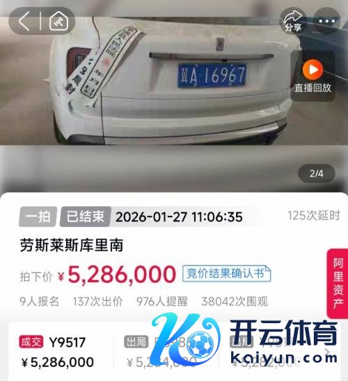 大皖新闻讯 1月27日上昼,大皖新闻记者从阿里金钱平台看到,一辆涉刑金钱劳斯莱斯库里南拍卖终了,起拍价471万元,经由137次出价开云kaiyun登录入口登录APP下载,最终以528.6万元成交,超过评估价57.6万元。