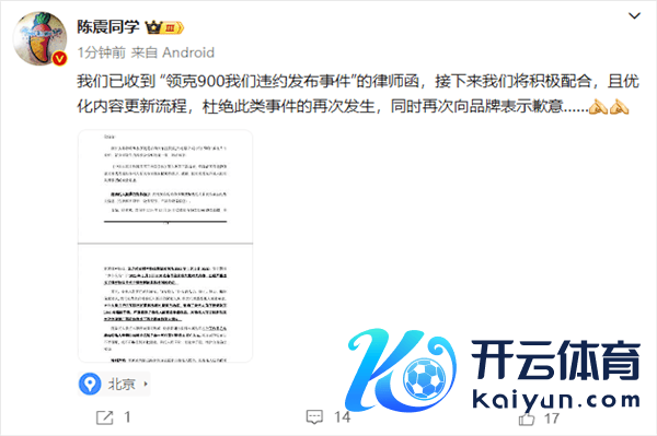 面对这一出乎不测的间隙,陈震马上接收了步履,屡次在公开阵势向领克品牌抒发歉意,并阐述这是由于里面果决所致。他涌现,在事件发生后不久,他就收到了领克发出的条款抵偿500万元东说念主民币的讼师函。陈震默示将全力互助处置此事,并情愿将优化里面本色更新经过,以提神雷共事件再次发生。