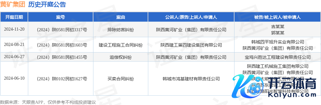 本站音问,笔据天眼查APP显露,近日公布了一则陕西黄河矿业(集团)有限背负公司当作原告/上诉东谈主的开庭公告,详备本体如下: