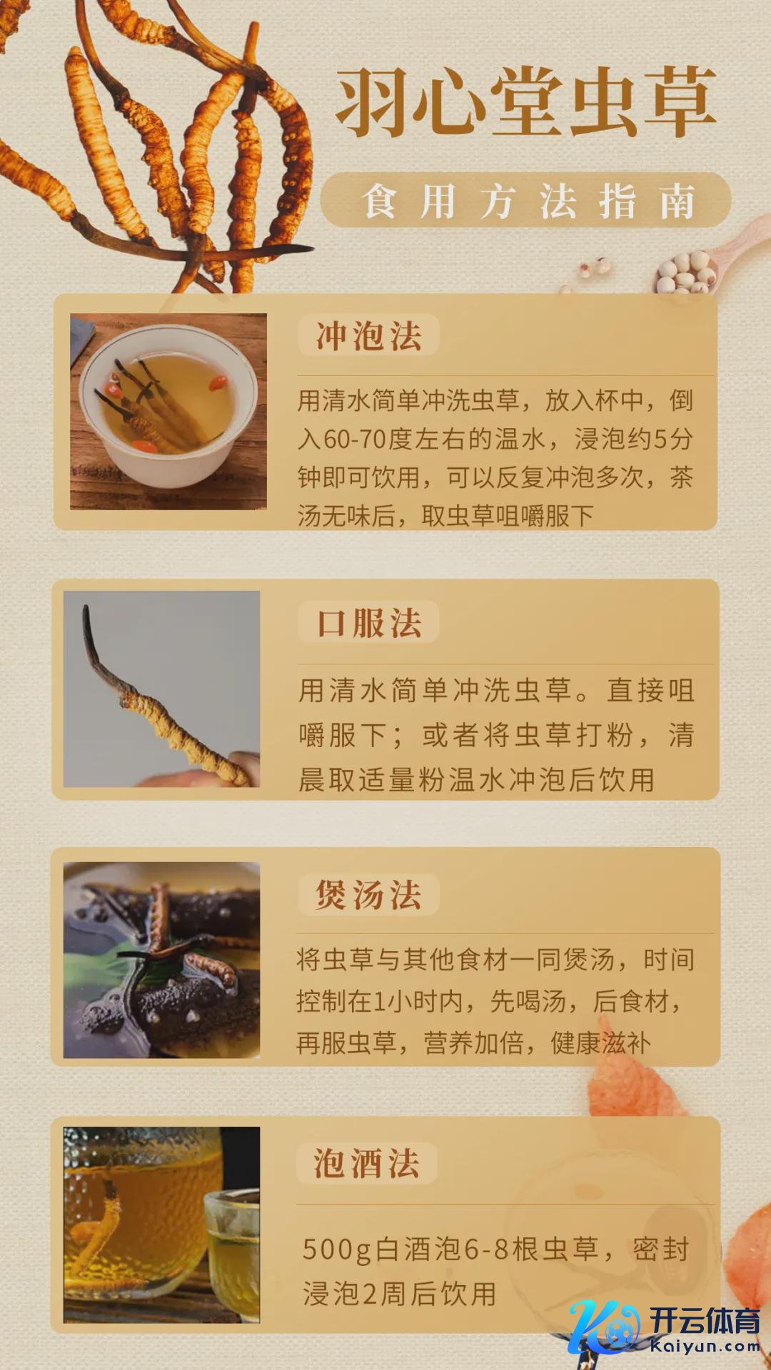 3、煲汤:煲汤最有养分的服法,等汤快好,在放入虫草,这样的养分要素不会挥发,让养分充分融于汤里