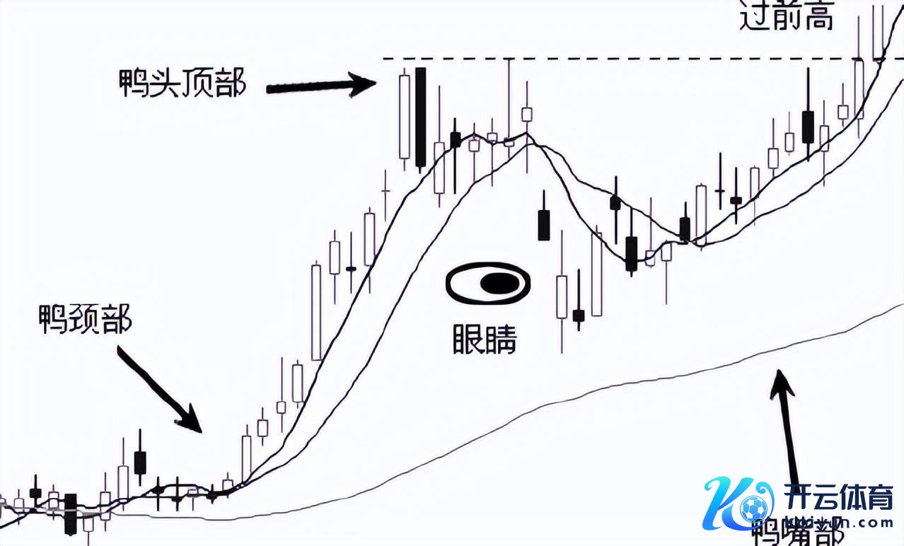 图形识别:鸭头上攻(如图1-1)K线组合花式是庄家建仓、洗盘、过鸭头顶拉高档一系列活动所酿成的经典花式。如图中所示,标上眼睛之后,是不是活脱脱一个鸭头图形?