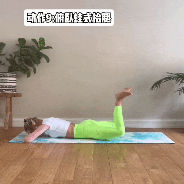四角跪姿在垫面上,屈左手臂大臂大腿垂直垫面,吸气,右膝离地呼气,右膝向外朝上举高,然后伸直右腿吸气,归附,重迭训导10-20次临了一次外展脉冲10次