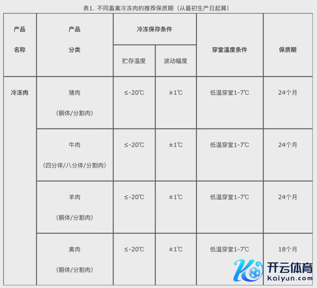 1993年,中国肉类详尽连络中心、中国食物公司共同主编的《中国肉类蛋品企业指南》限定:在温度-30℃、相对湿度95-100%的冷库保存,牛肉、羊肉的保质期不错达到24个月,猪肉不错达到15个月。