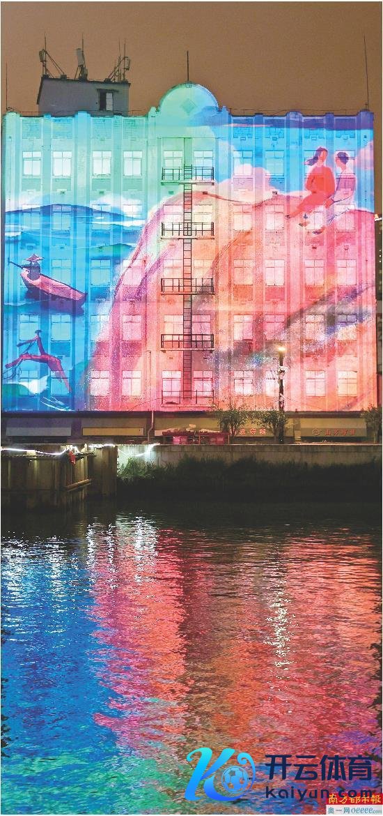 晚风轻拂,苏州河的活水跟着光影微微浪荡。关良的孙悟空、陈永锵的锦鲤、林风眠的青衣仕女……一幅幅岭南好意思术经典画作在河面“活”起来。在第二届上海国外光影节上,“闪亮·上海 静安光影季”尽头呈现“其命惟新——广东好意思术百年大展”光影秀,引诱繁密市民搭客安身围不雅。