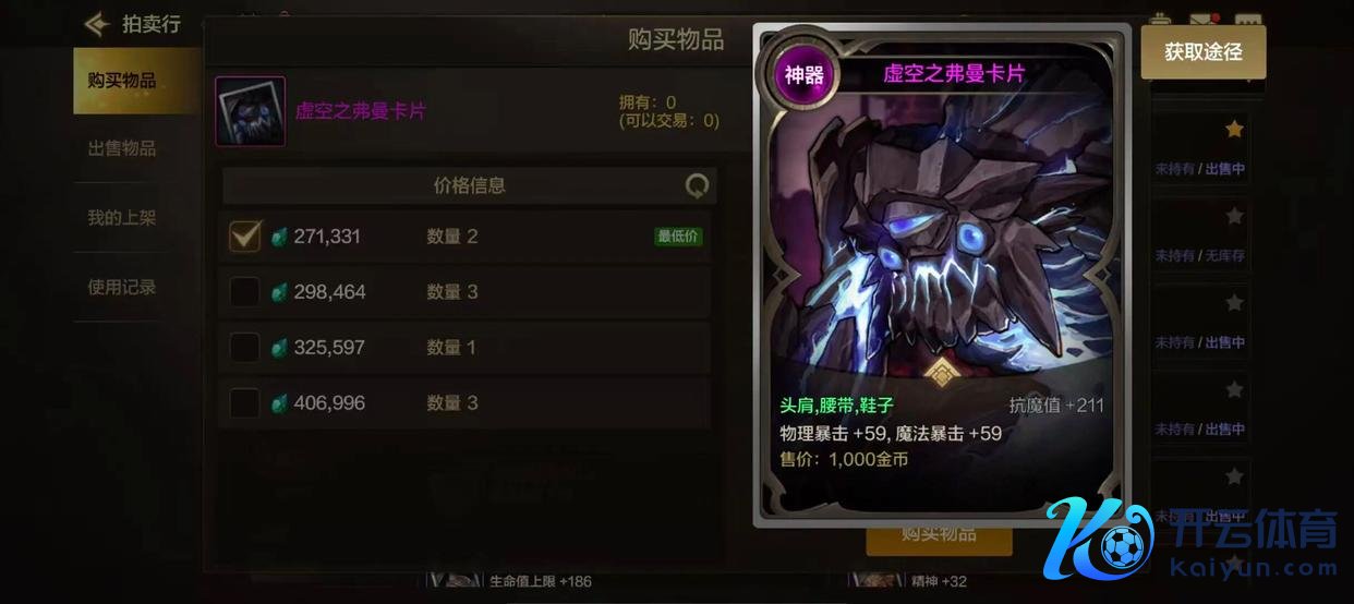 (3)虚空卡片,双爆+59,抗魔+211,近期涨了一波,售价为27万泰拉。