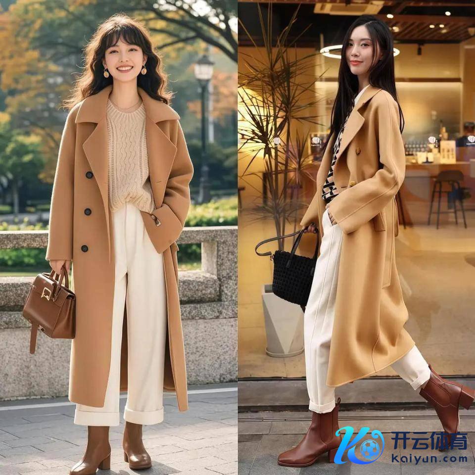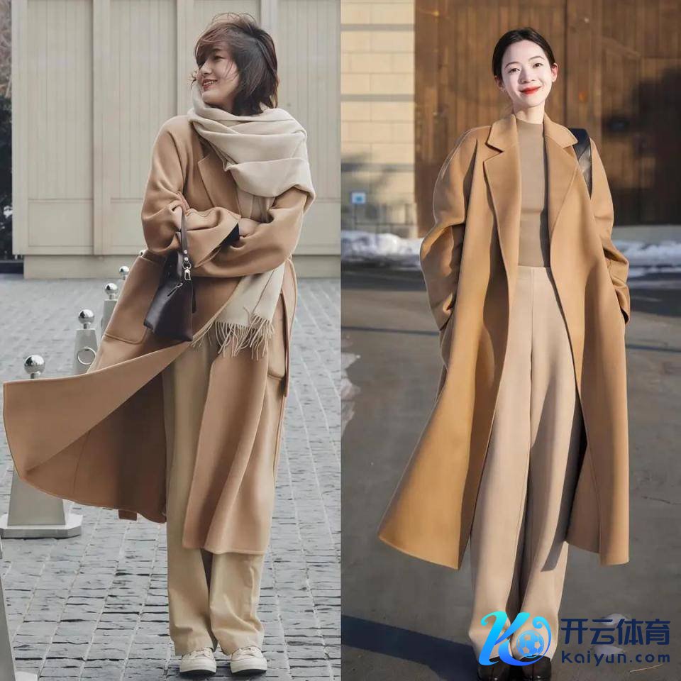 驼色的穿着十分的经典,穿在身上之后,能让你在这个冬季变得愈加有活力,举例上头这两位前锋达东说念主径直选择一件翻领的驼色大衣内搭针织衫,加上一条白色长裤,脚上穿的同色系的驼色短靴,这样的穿搭,岂论是中年女性已经年青貌好意思的女生,王人可以消弱独霸,穿出前锋感。