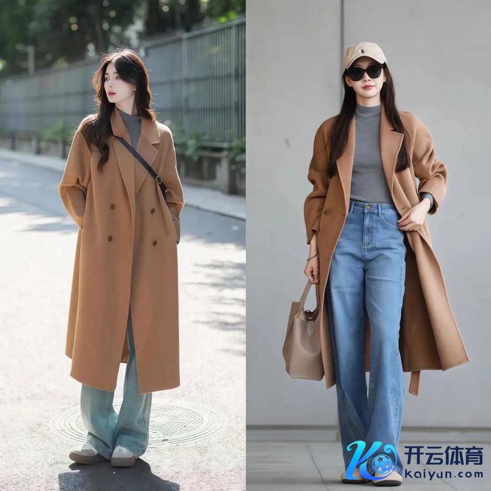 诚然了,你也可以选择驼色大衣外衣,内搭卫衣,加上一条灰色失业裤梗概是白色的失业直筒阔腿裤,正常外出这样搭配,完全莫得任何问题。