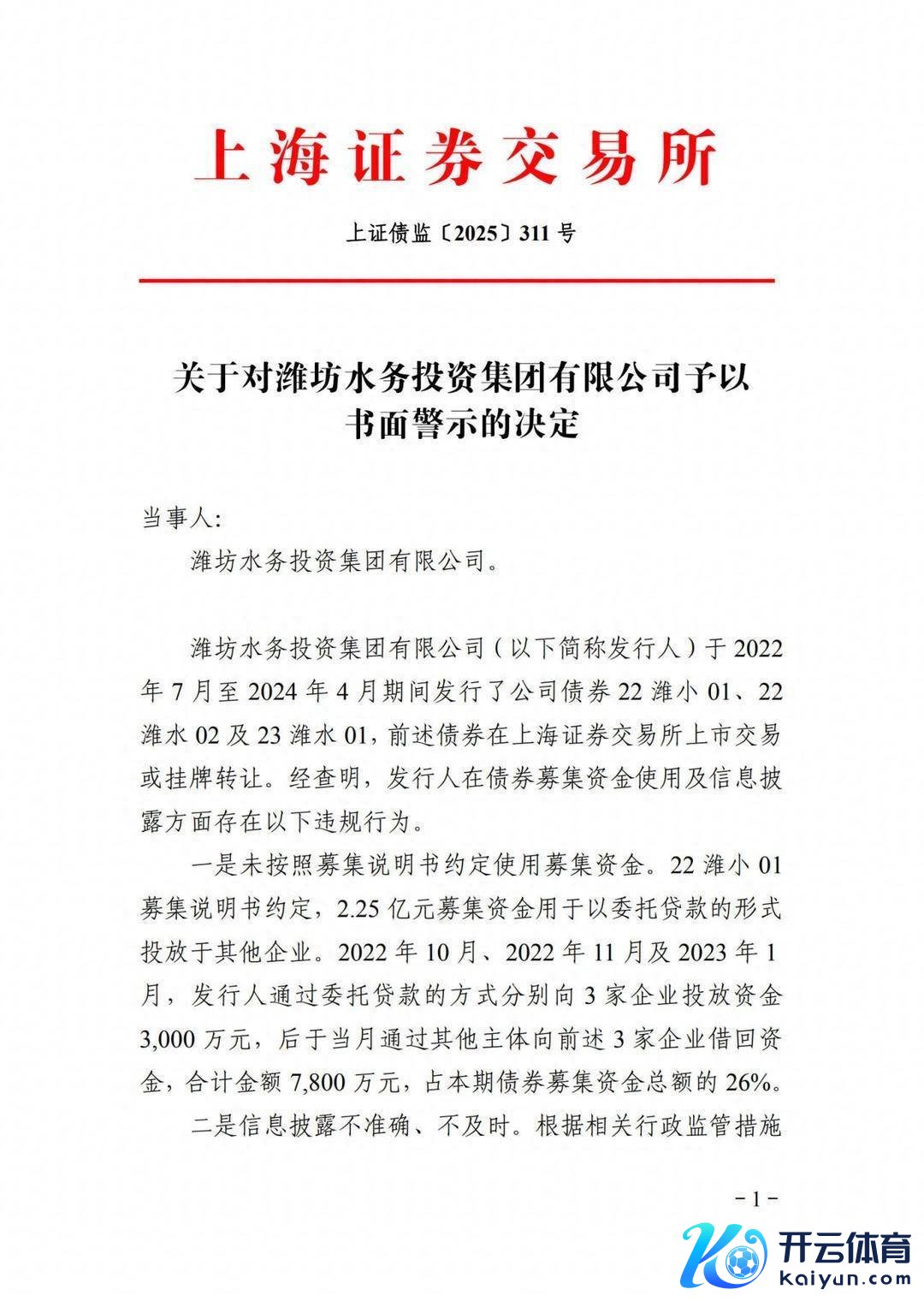 近日,上海证券交游所官方网站败露,对潍坊水务投资集团有限公司(简称“潍坊水务”)赐与书面警示。据上交所出具的决定书,潍坊水务在债券召募资金使用及信息线路方面存在违游记径。