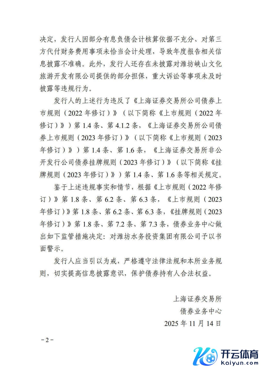 另外,据联系行政监管顺次决定,潍坊水务因部分有息欠债司帐核算依据不充分、对第三方代付财务用度事项未允洽司帐处理,导致年度诠释联系信息线路不准确。此外,潍坊水务还存在未线路对潍坊峡山文化旅游开导有限公司提供的部分管保,紧要诉讼等事项未实时线路等违游记径。