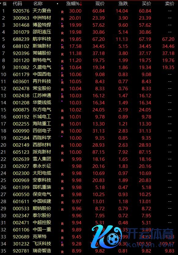 个股方面,当天涨停股部分如下:航天能源(10.01%)、西部材料(10.00%)、龙洲股份(10.04%)、博纳影业(9.97%)、航天机电(10.00%)。