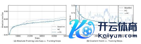 论文配图HC与mHC的训练赔本差距,其中淡蓝色线为HC,蓝色线为mHC。论文截图